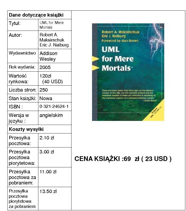 UML for Mere Mortals![]() Zamówienia prosimy składać drogą mejlową, telefoniczną, gg, skype, faxem.